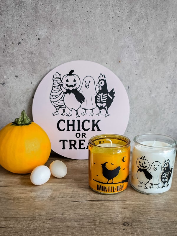 Geef je kippenhok, tuin of woonkamer een vleugje Halloween met dit originele wandbordje “Chick or Treat”. Het bordje heeft een warme berkenkleur en is gemaakt van forex: lichtgewicht, stevig en waterbestendig. En bedrukt met hoogwaardig vinyl. Zo hang je het bordje zowel binnen als buiten op, zonder zorgen over regen of vocht.