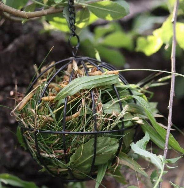 Omdat het voer in de bal hangt, blijft het beter beschermd tegen vuil en uitwerpselen dan wanneer je het los op de grond aanbiedt. Dat houdt het groener, frisser en schoner. Dankzij het klepje kun je de voerbal eenvoudig vullen of bijvullen, wanneer het jou uitkomt.